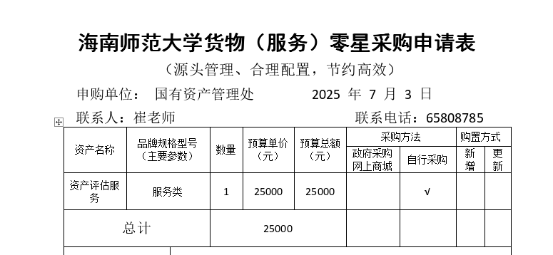关于国有资产管理处申请购买服务的公示