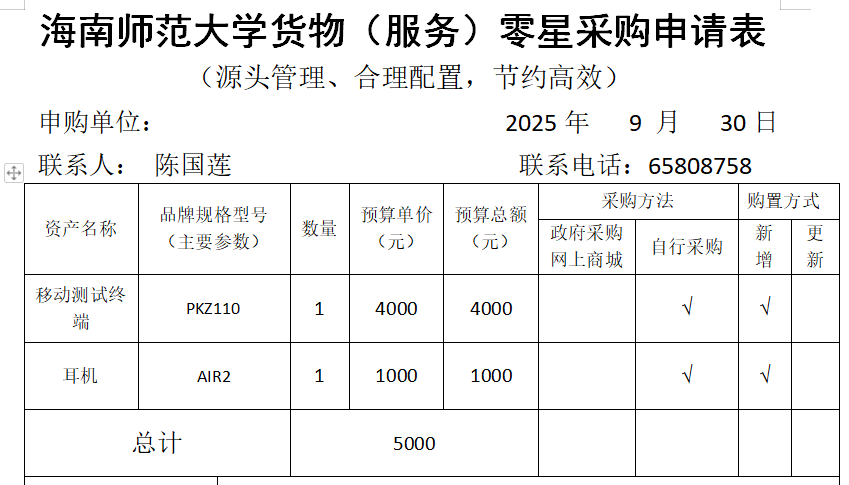 因科研工作需要,申请采购科研设备,现予公示,如有异议请联系陈老师。