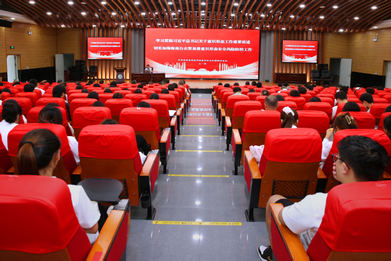 会议特别邀请了海南省委宣传部意识形态和舆情信息处副处长王一军作专题讲座。王一军以“学习贯彻习近平总书记关于意识形态工作重要论述精神,切实加强海南自由贸易港意识形态安全风险防控工作”为题,结合鲜活案例分析了当前意识形态领域面临的复杂形势和风险挑战,深入阐述了怎样理解意识形态工作的极端重要性,为进一步做好意识形态风险防控工作提供了对策和建议。
