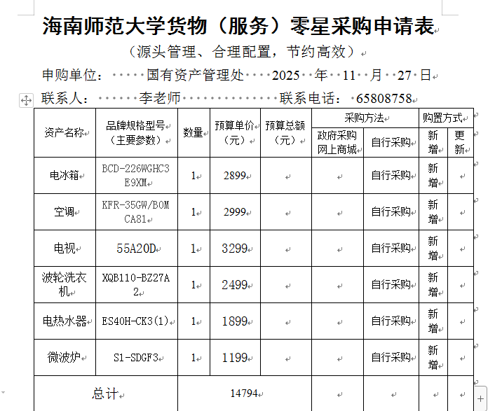 现因工作需要,申请采购设备如下,现已公示,如有异议,请联系李老师,65808785。