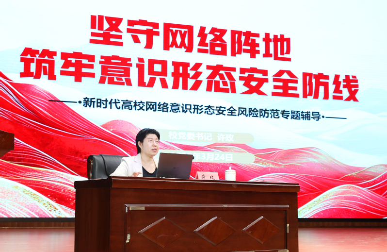 专题讲座主题鲜明、内涵丰富、案例鲜活、指导性强,从理论、历史、现实维度深刻阐释了新时代做好意识形态工作的极端重要性,系统解读了习近平总书记关于意识形态工作重要论述的核心要义,精准研判当前百年未有之大变局下高校网络意识形态领域的风险态势与渗透新特征,结合校内外典型案例进行了警示教育,分析了高校师生应对网络意识形态渗透的实践路径和方法举措,为我校进一步压紧压实意识形态工作责任、筑牢校园网络意识形态安全防线、守好立德树人主阵地提供了清晰遵循与实践指引。