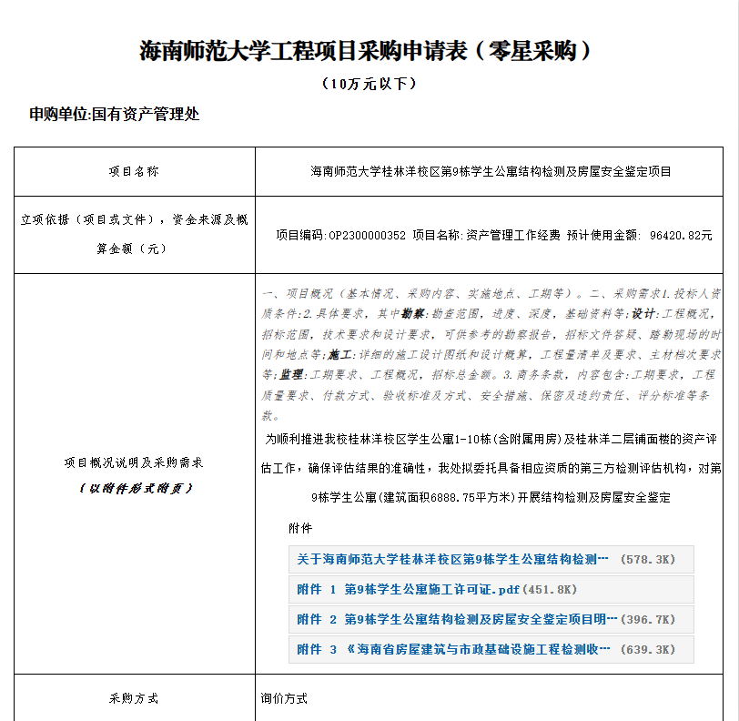 海南师范大学桂林洋校区第9栋学生公寓结构检测及房屋安全鉴定项目服务采购公示